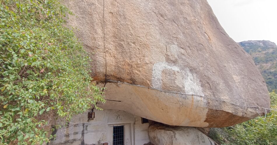 The Unknown and Tranquil Heaven Sri Gangaadhareshwara Swamy Forest Hill Cave Temple is about 95km from Bengaluru, 180km from Mysuru, located in Junjaramanahalli village. There is a muddy road to reach the below of the hill. From below one needs to trek through a small trail to reach the middle of the hill. Ancient Sri Gangaadhareshwara Swamy Cave Temple is present in the middle of the hill. The idol inside the temple is udhbhava murthy. The view of the hills surrounding this place is mesmerizing. One can trek further above from this temple and explore. Looking for a quick getaway from city busy life, this is the place to be. Thus making this a must visit place with friends and family